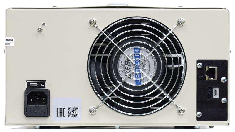 В источнике питания APS-3610 реализована схема "интеллектуального" управления вентилятором. При включении источника питания APS-3610 вентилятор охлаждения не включается, как это обычно принято в подобных устройствах. Для управления работой вентилятора на внутреннем радиаторе установлен термодатчик, при нагреве которого включается вентилятор для охлаждения. При снижении температуры вентилятор отключается. Например, под нагрузкой 4,5 А, 40 В вентилятор включается через 5 минут, отключается через 2 минуты. Наверх