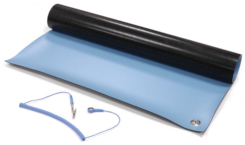 Антистатический настольный коврик предназначен для защиты оборудования от статического электричества (ESD). Подключается к контуру заземления с помощью провода заземления. Размер: 1200х600 мм, толщина: 2.0 мм. Поверхностное сопротивление менее 10E8 Ом; Сопротивление нижнего слоя менее 10E5 Ом. Цвет: голубой.