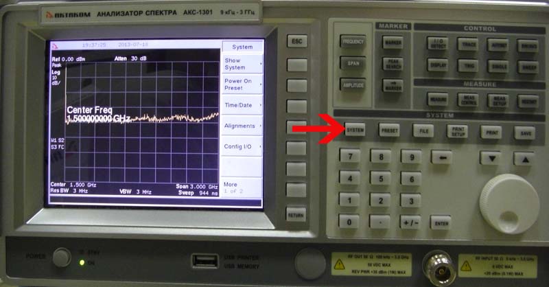 Рис. 3. Вход в меню System. 4. Нажмите кнопку на передней панели прибора расположенную напротив надписи Config I/O (рис. 4).
